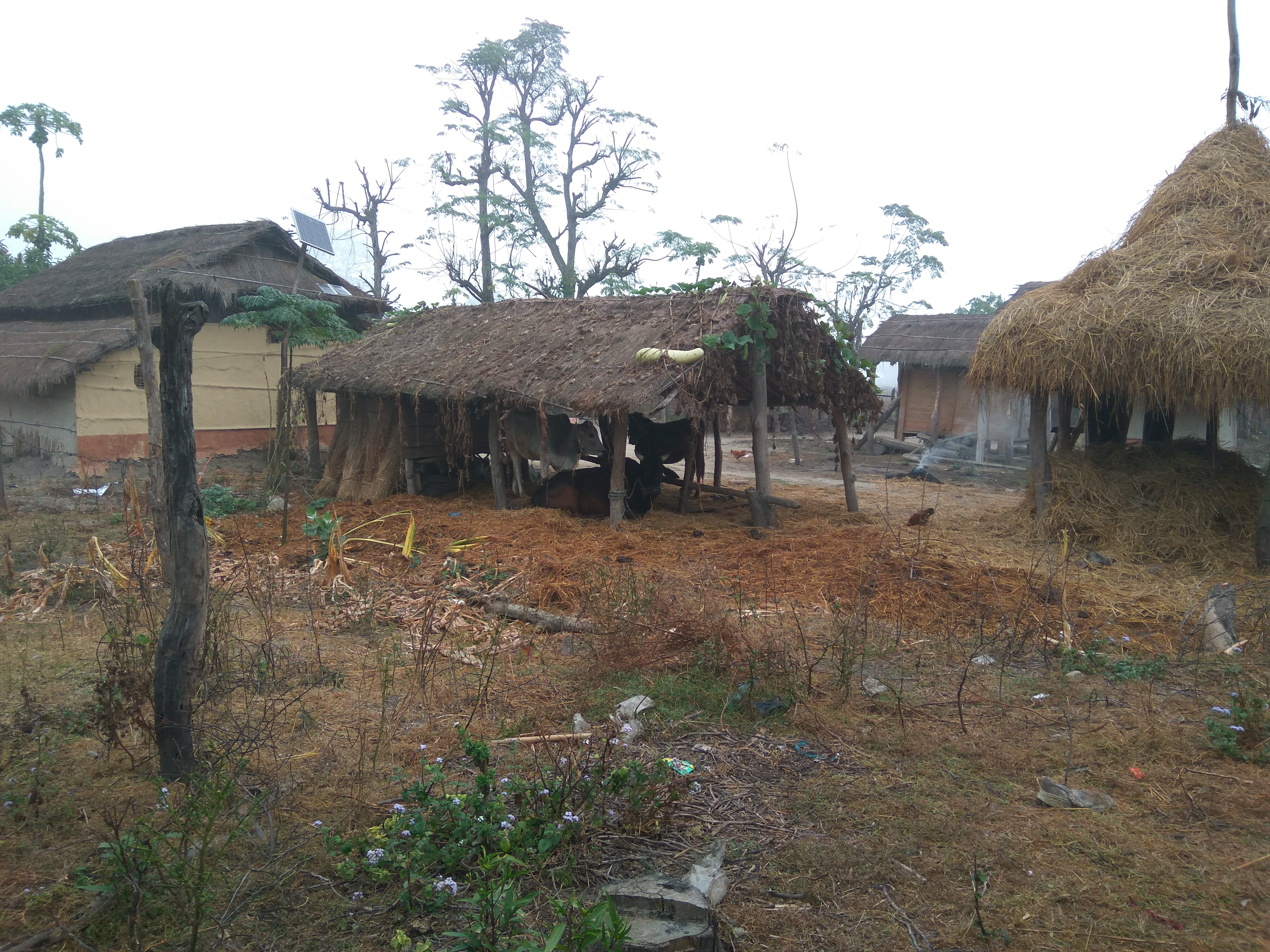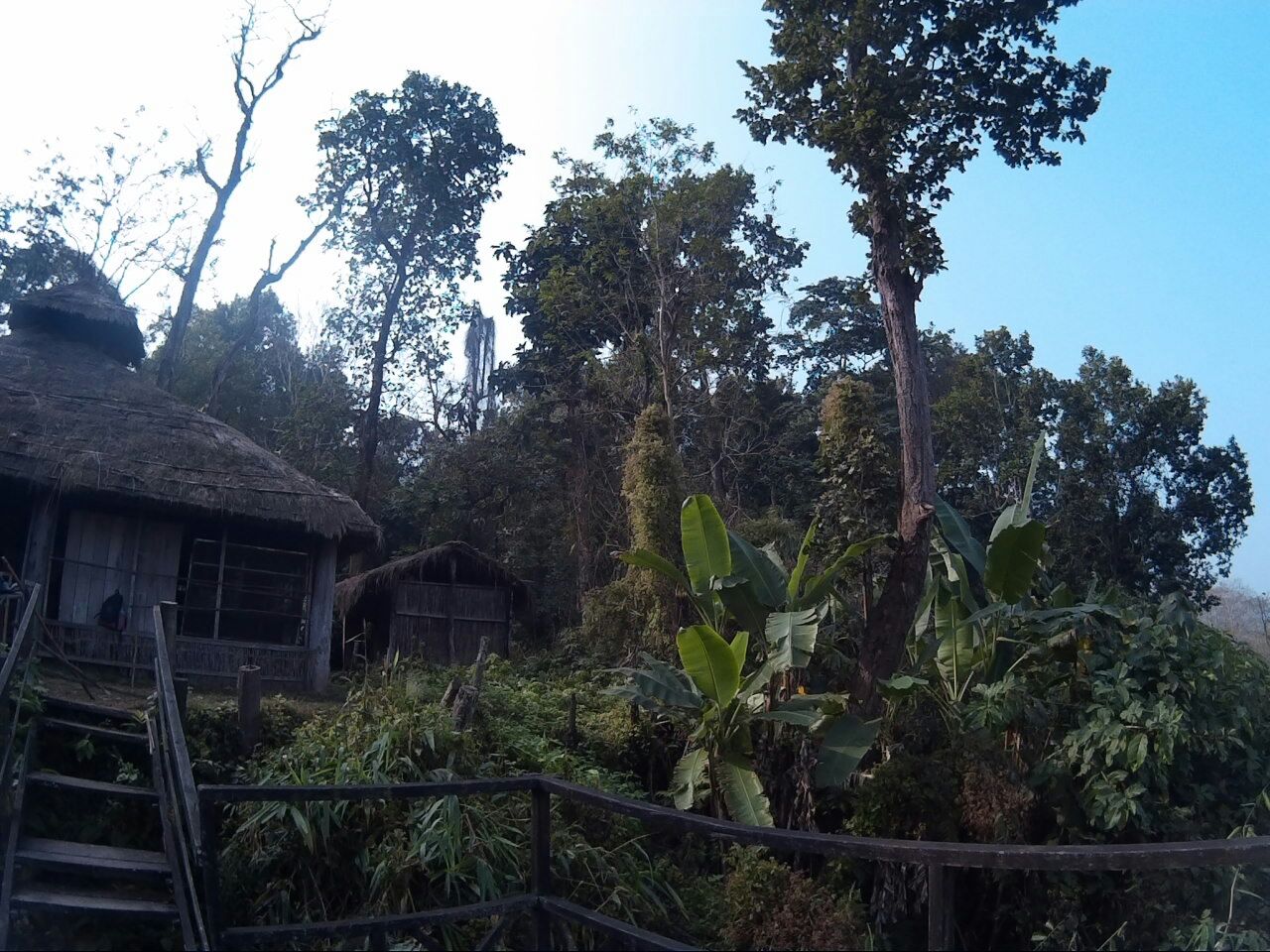 Angeblich ohne Krokodile. Aber spannend war es trotzdem in der Dämmerung bis zu den Oberschenkeln mitten im Urwald in einem Fluss zu stehen! Dann haben wir endlich das Dorf erreicht. Das ist wirklich wunderschön!! Alle Häuser sind aus Bambus und Elefanten Dung gebaut und es gibt kein Strom. Abend gegessen haben wir auf einem Aussichtspunkt mit Blick auf den Fluss. Ein schöneres Weihnachtsessen kann ich mir fast nicht vorstellen!