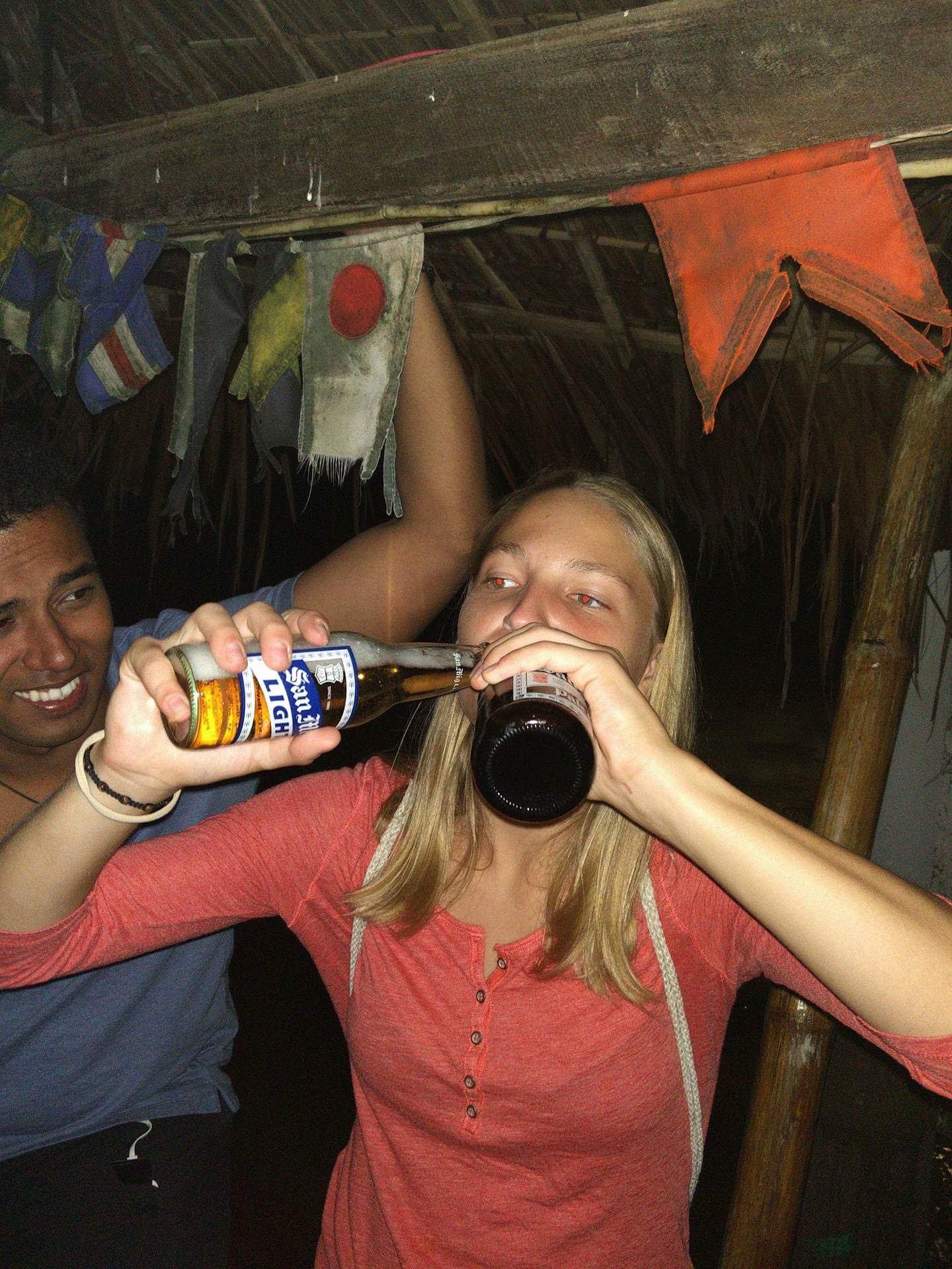 Aber es war der Abend vor meinem Geburtstag und so haben wir gleich angefangen, ein Trinkspiel zu spielen – wieder mal! Immer mehr Leute sind dazu gekommen und am Ende sind wir ca. zu zwanzigst in eine Bar gegangen, und haben auf Mitternacht gewartet. Zum Geburtstag hab ich dann ein Lied, und von jedem einen Shot, bekommen. Viel mehr als ich trinken konnte, also hab ich sie in Wasser eingetauscht 😀