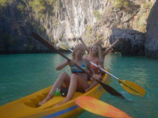 Vermutlich dem “all-you-can-drink”-Rum geschuldet kamen wir auf die Idee, ein Kayak mit drei philippinischen Jungs zu kentern. Natürlich waren die stärker und wir sind ziemlich schnell umgekippt 😀