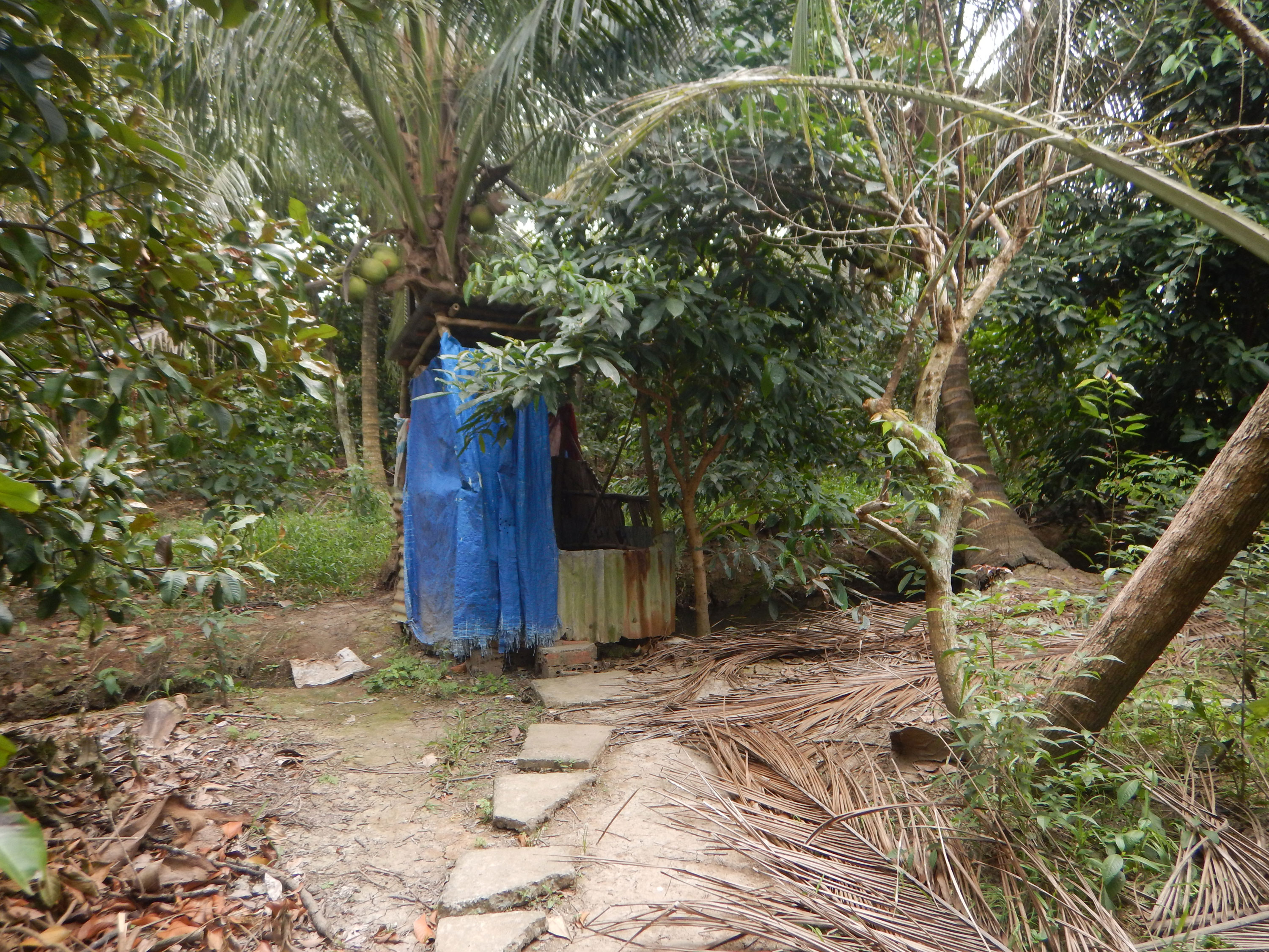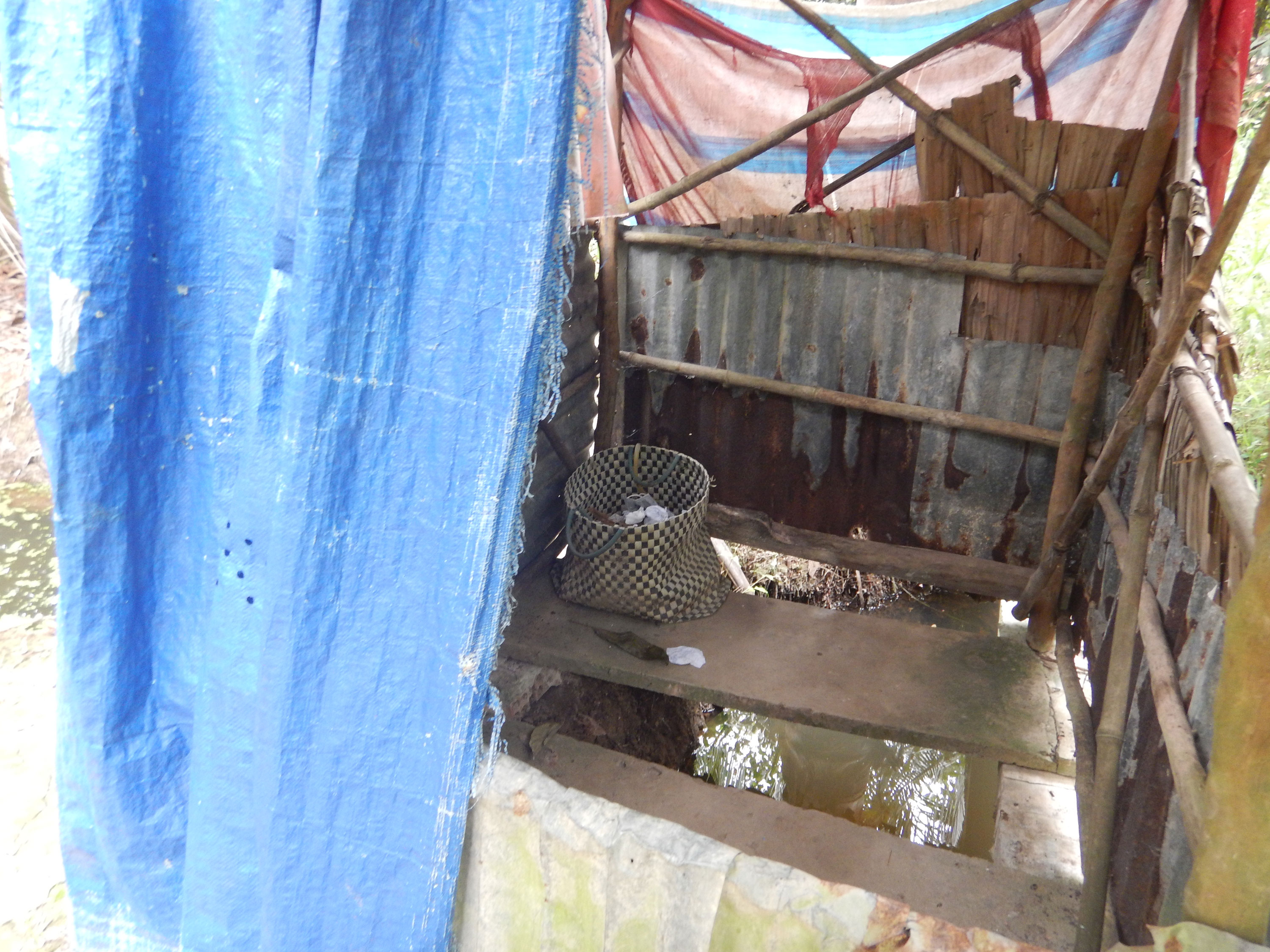 Nach dem Essen haben wir Mittagsschlaf gehalten und mussten dann aufs Klo: eine Art Brücke über dem Bach mit Loch zum durchpinkeln. Mit Hammer Aussicht auf den Bach durch Plantagen! Wenn man bloß nicht wüsste was da alles in dem Fluss schwimmt…