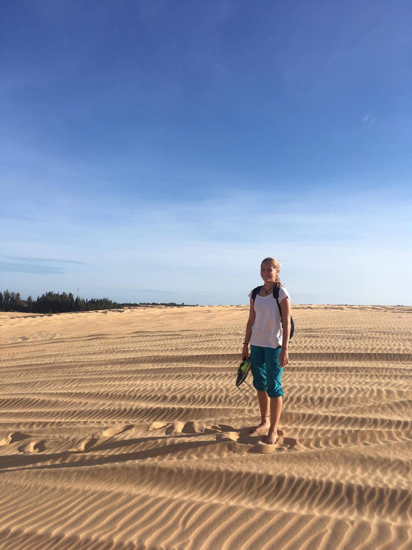 Zum Glück ist das Klima in Mui Ne fast Wüsten ähnlich, so dass unsere Sachen in Kürze wieder getrocknet sind. In Mui Ne haben wir die Sanddünen angeschaut. Da fühlt man sich fast, als wär’ man wirklich in der Wüste!