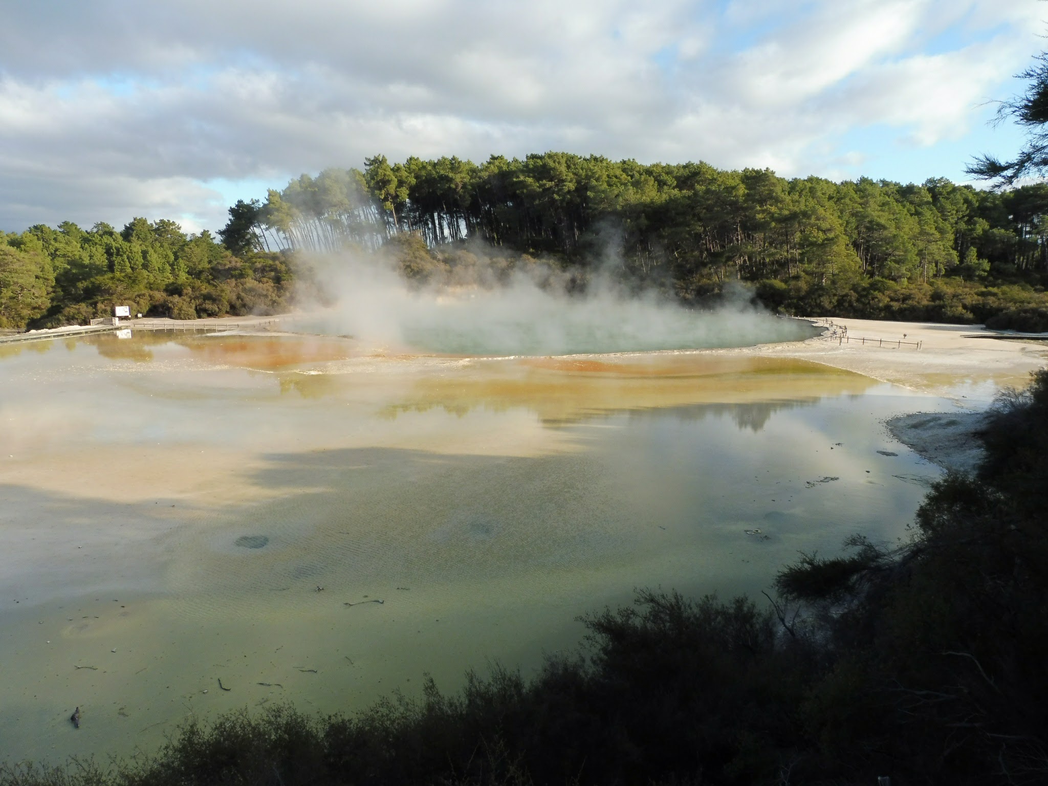 Am dritten Tag haben wir einen Spaziergang an ganz vielen Wasserfällen entlang gemacht. Die sahen so cool aus, am liebsten wäre ich gleich reingesprungen! Aber dafür war es leider zu kalt. Danach waren wir erst bei einem Matsch-Pool, aus dem heißes Wasser geblubbert ist, und dann noch bei Schwefelquellen. Die waren so schön, dass man sogar den Gestank vergessen konnte. Baden durfte man aber leider nicht, dafür war es zu heiß.