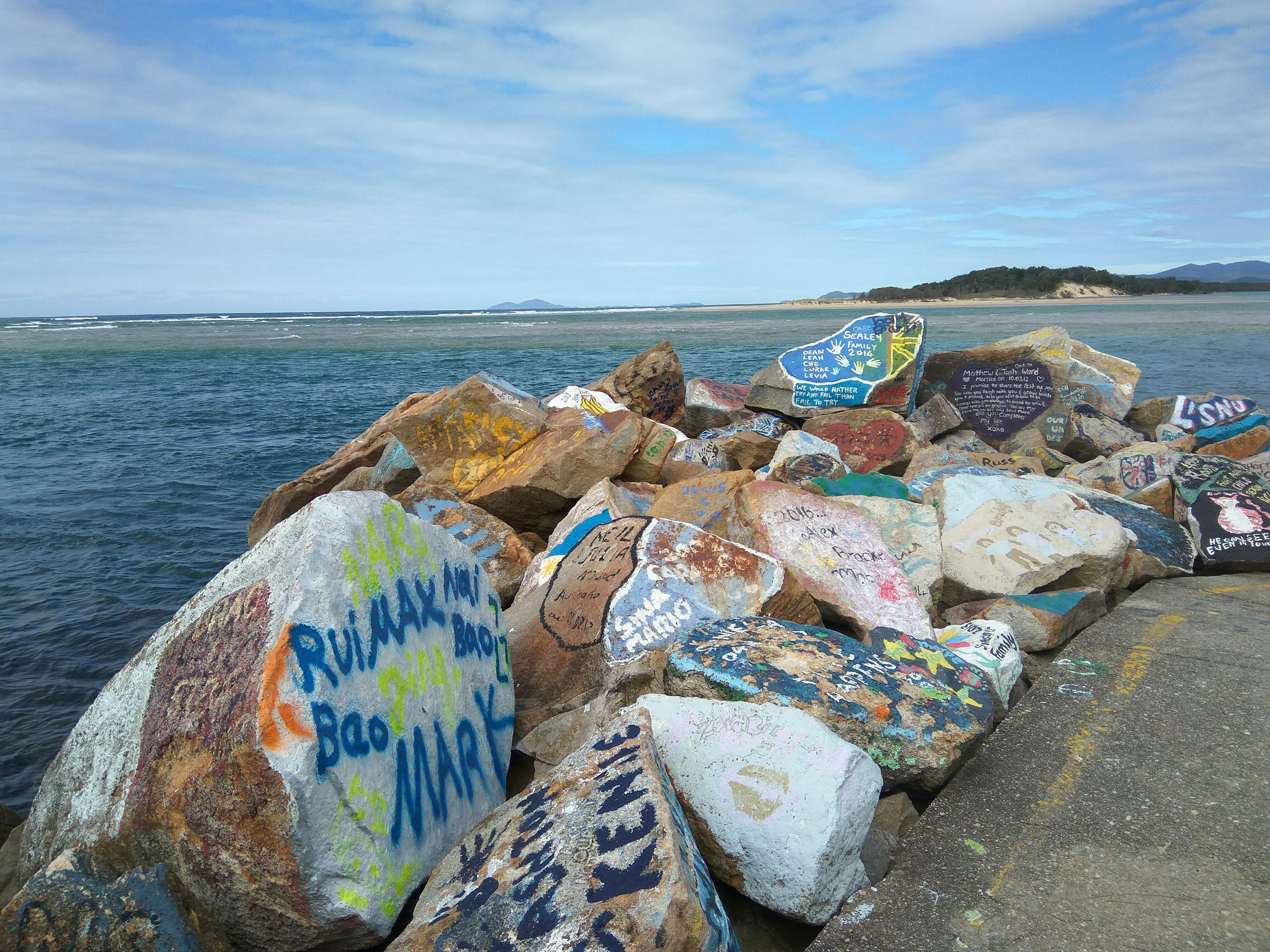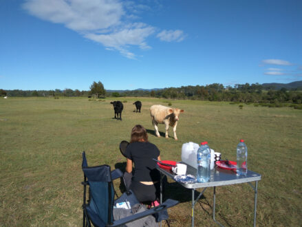 Am vierten Tag waren wir, nach einem Stopp in Nusa Head mit ganz vielen bemalen Steinen, auf dem schönsten Campingplatz bisher. Es war eine riesige Kuhweide neben einem Fluss! Wir hatten ein riesen Feuer und morgens wurde ich von Kühen geweckt! Und auf dem Weg haben wir noch Kängurus und Wollabies gesehen!